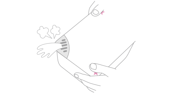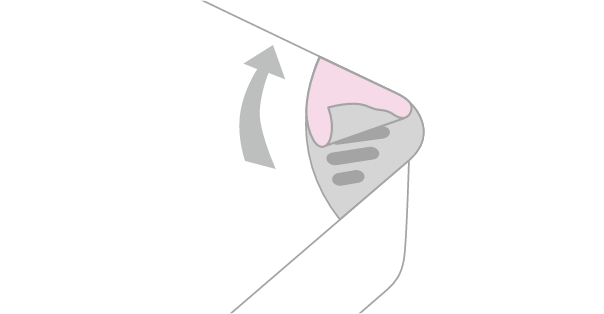 3分後、Cの湯切り口を矢印の方向にゆっくりはがします。