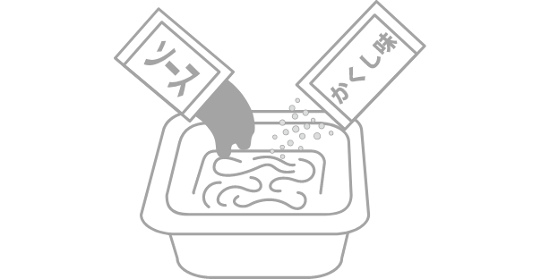 フタをすべてはがし、ソースをよく混ぜ合わせ、かくし味を入れ、お召し上がりください。